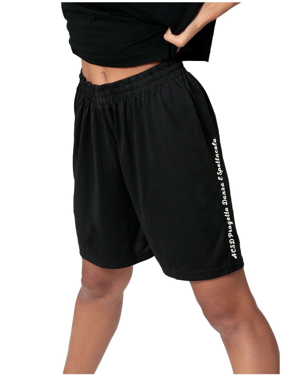 • Short modello basket con girovita elastico regolabile e cordoncini interni con impuntura di sicurezza.