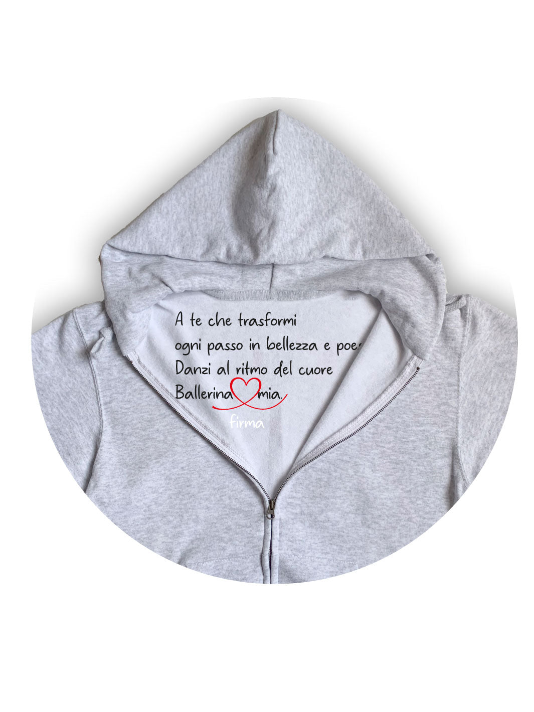 FELPA ZIP NPHD GREY LOGO ORO/ROSA SAN VALENTINO CON DEDICA personalizzabile - Non Posso, Ho Danza.